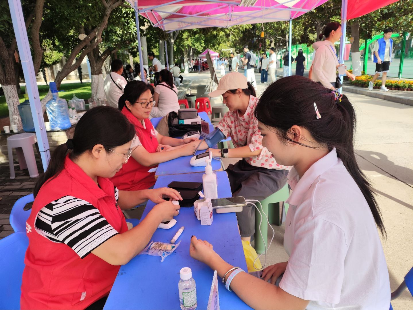 金秋送爽,丹桂飘香。9月6-7日,河南k8凯发迎来了2025级新生报到。从清晨到日暮,迎新现场热闹非凡,一支身着志愿者服装的队伍尤为引人注目。第一教工党支部党员化身为“健康守护者”,摆放血压计、血糖仪等专业设备,免费为新生和家长提供测血压、测血糖服务,并开展健康科普知识宣教,以专业和热情为迎新工作增添了一抹亮色。