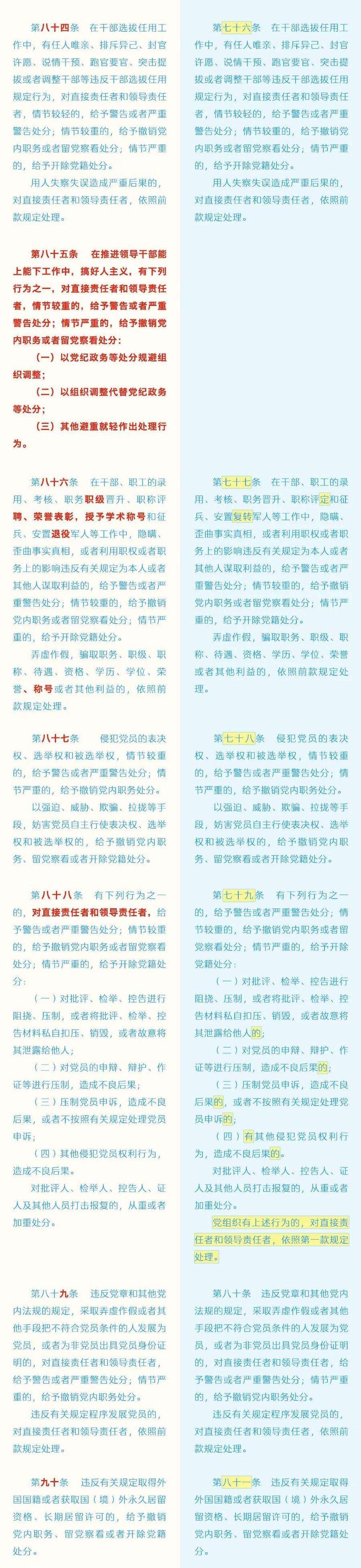 党纪学习教育 | 《中国共产党纪律处分条例》修订前后最全对照表