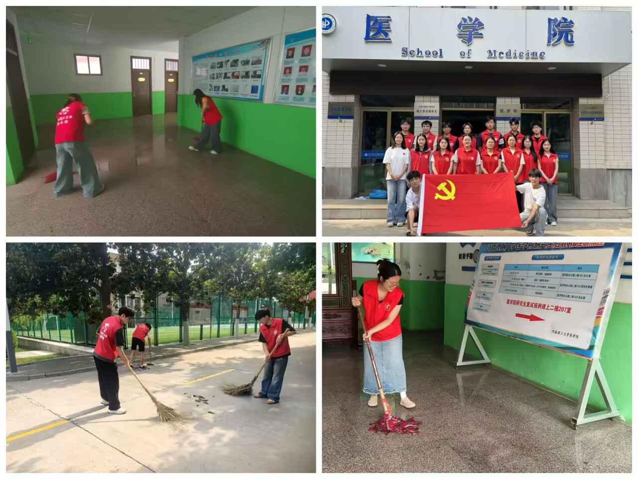 学生党员们身着红色马甲,手持扫帚、垃圾钳、抹布等工具,分工协作、干劲十足。经过两个多小时的辛勤劳动,医学院楼周边环境焕然一新,活动得到师生的一致好评。参与活动的党员史广濮表示:“作为学生党员,我们不仅是校园文明的受益者,更应是建设者。今后将继续立足身边小事,以实际行动为党旗增辉、为校园添彩。”